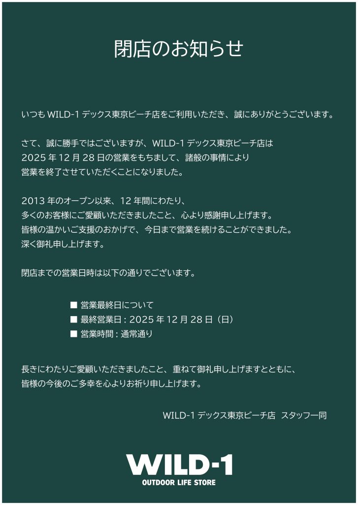 - WILD-1 郡山店 開店30周年記念イベント開催のお知らせ2025.09.22