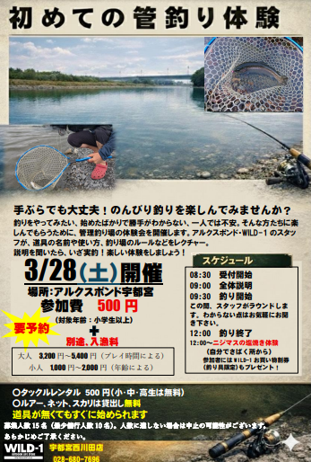 釣りをやってみたい方たちへ 「初めての管釣り体験会」 開催日:2026年03月28日(土)