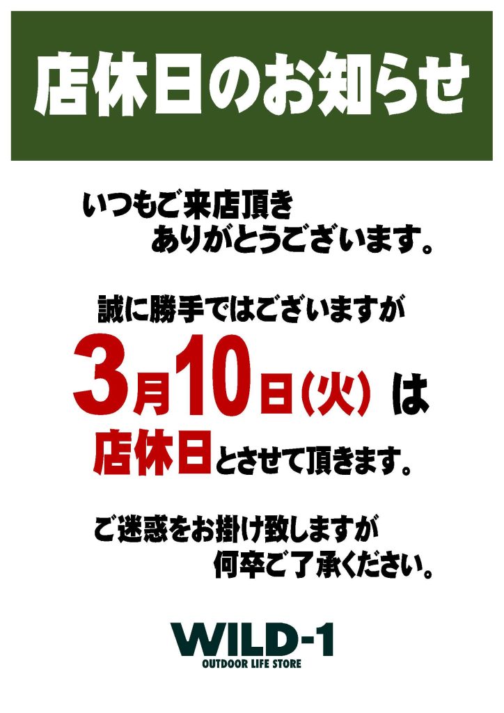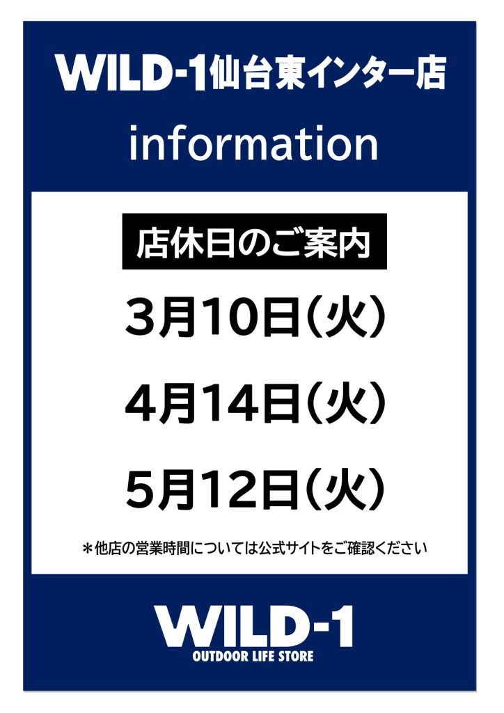 ★WILD-1越谷レイクタウン店 3月 店休日のお知らせ★