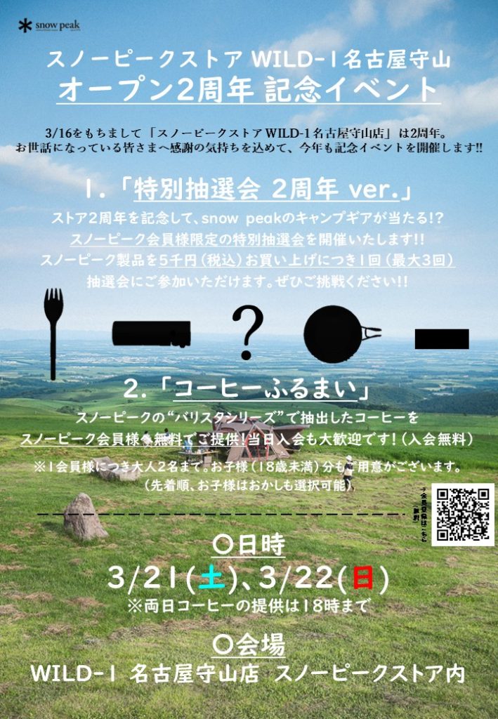 【WILD-1名古屋守山店スノーピークストア2周年祭開催のお知らせ♪】