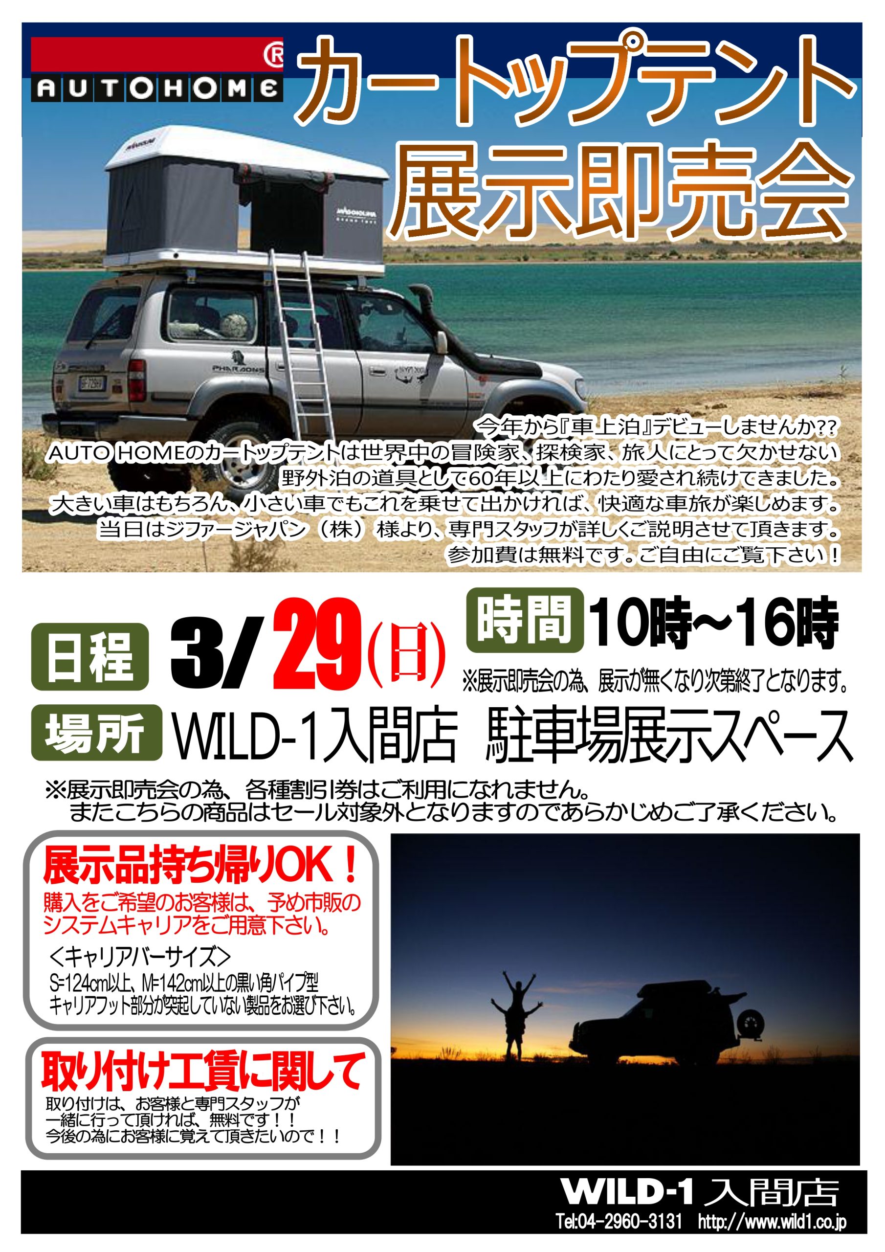 ジファージャパン カートップテント展示即売会 開催日:2026年03月29日(日)