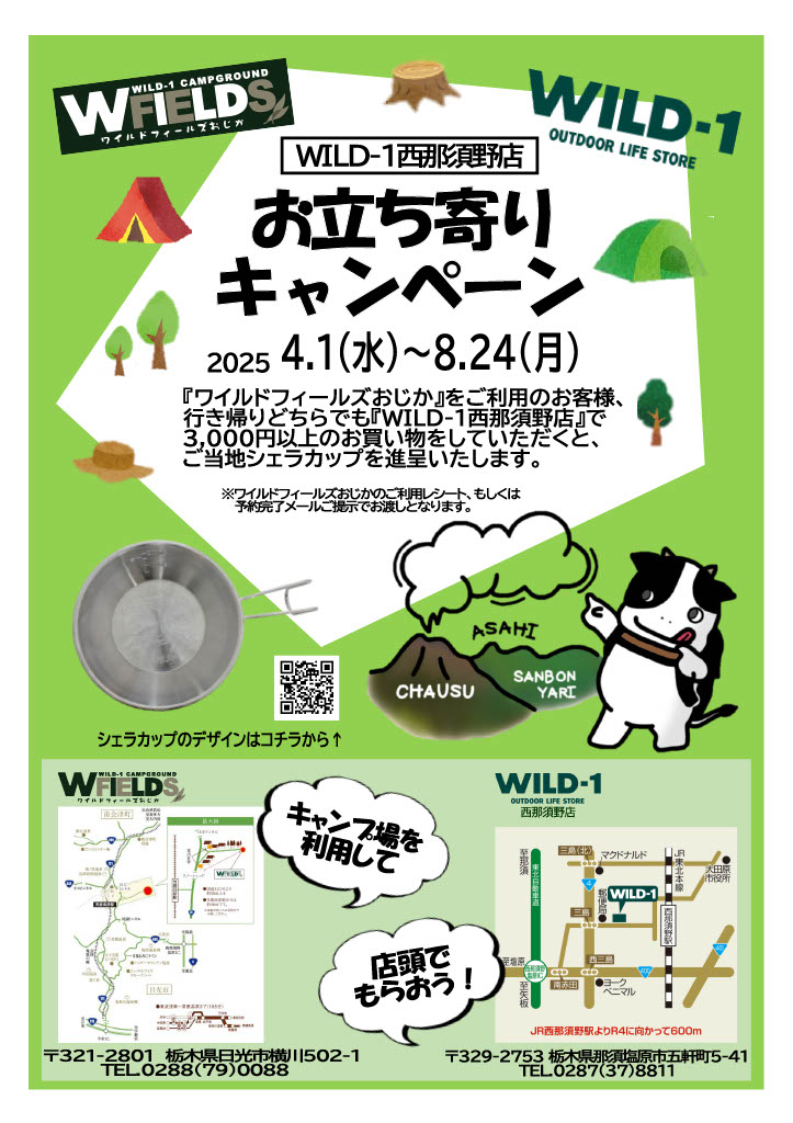 ワイルドフィールズおじかをご利用のお客様、WILD-1西那須野店お立ち寄りキャンペーンのお知らせ
