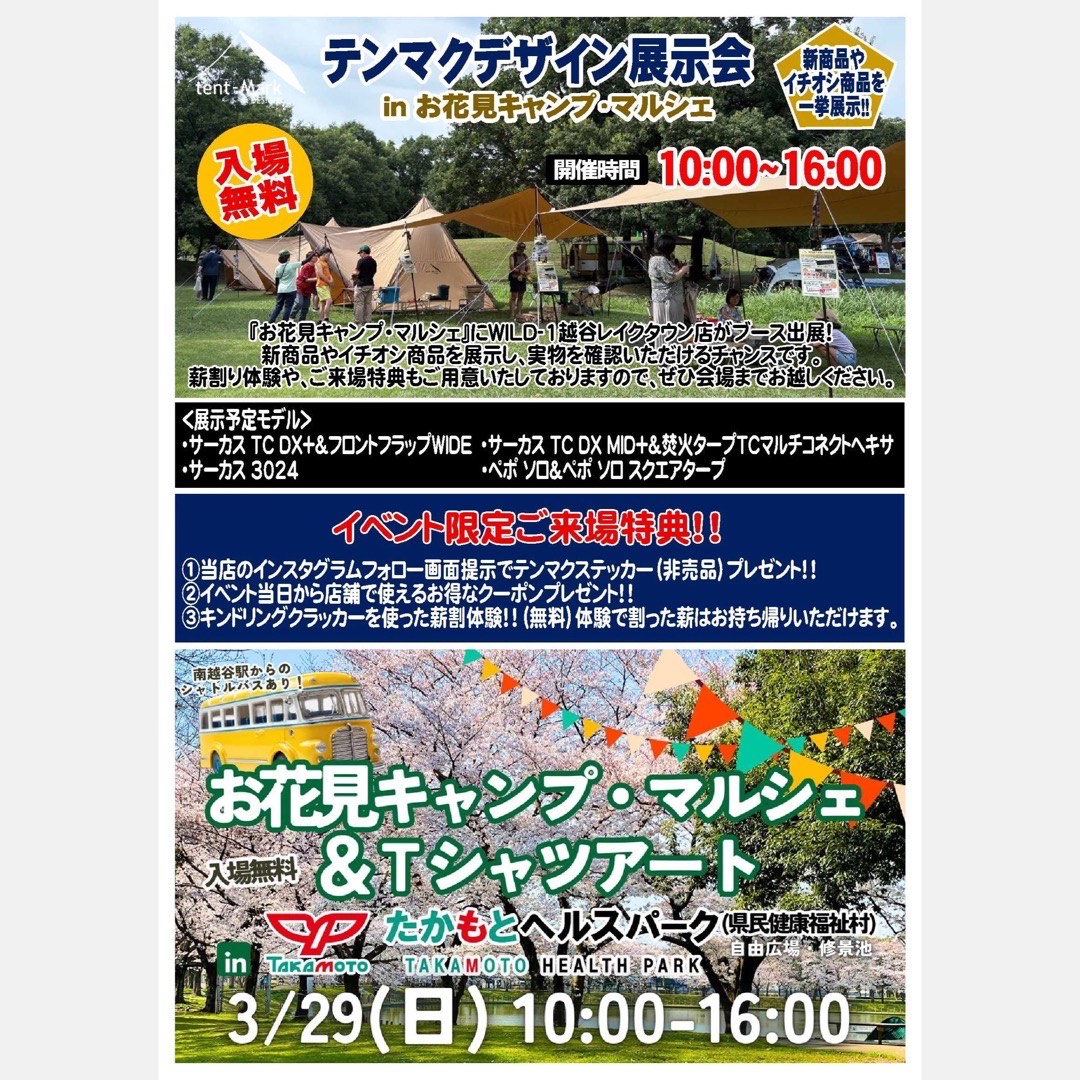 テンマクデザイン展示会 inお花見キャンプ・マルシェ&Tシャツアート 開催日:2026年03月29日(日)