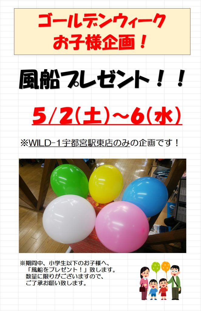 ゴールデンウィークお子様企画!~風船プレゼント!!