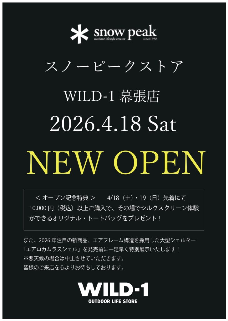 - WILD-1幕張店にスノーピークストアが4月18日(土)オープンいたします。お知らせ2026.04.13