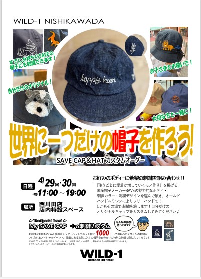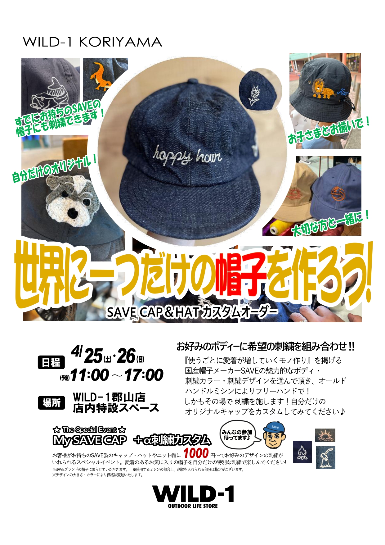 人気イベントを今年も郡山店で! 世界に一つだけの帽子を作ろう!SAVEキャップ オーダー受注会 開催日:2026年04月25日(土)~2026年04月26日(日)