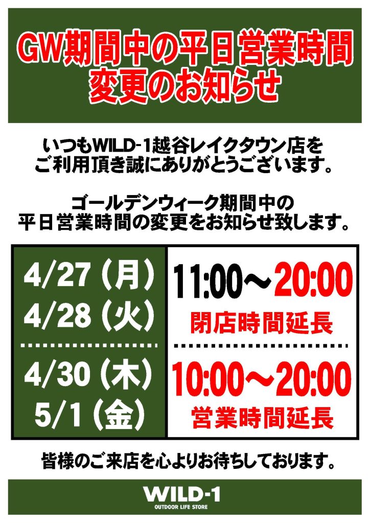 【ゴールデンウィーク 営業時間のお知らせ】