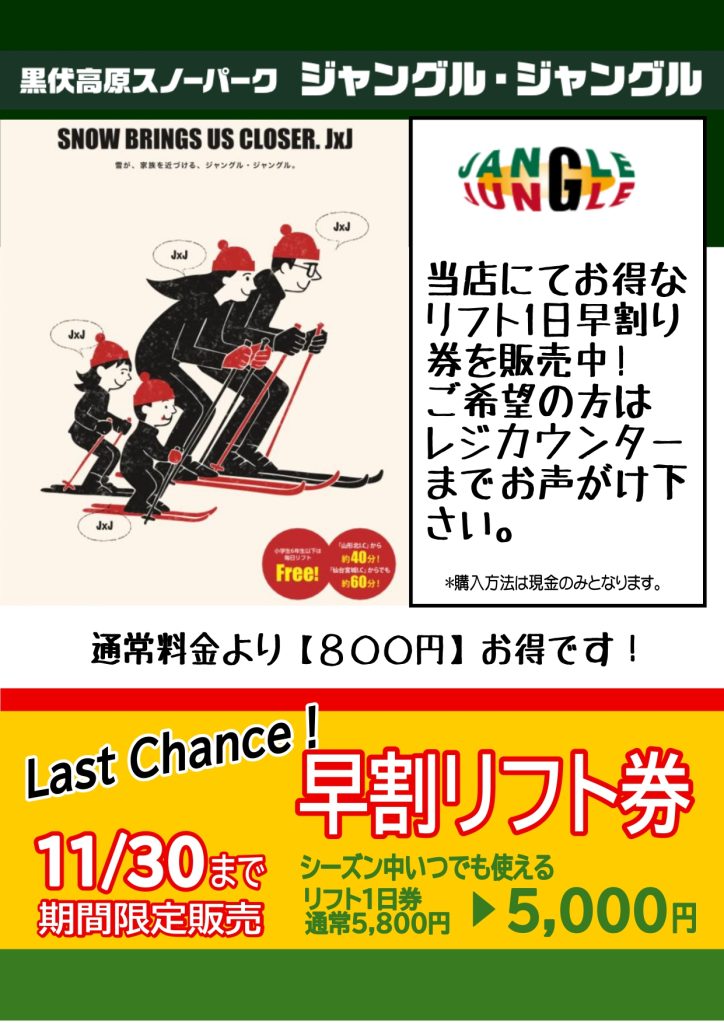 【11月限定 黒伏高原スノーパーク ジャングル・ジャングル WILD-1フレンドリーショップ特別価格!】