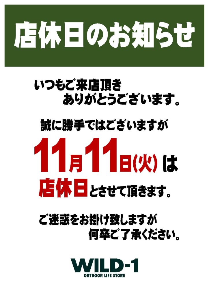 ★WILD-1越谷レイクタウン店 11月 店休日のお知らせ★