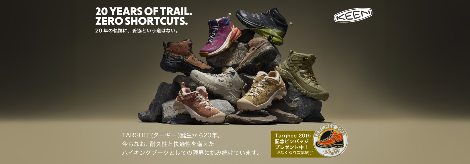 KEENを代表するロングセラーモデル「TARGHEE(ターギー)」の誕生20年を記念して、キャンペーンを開催。