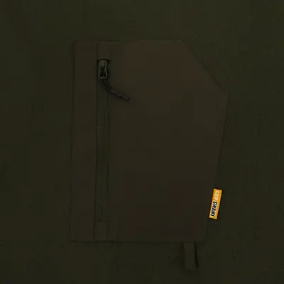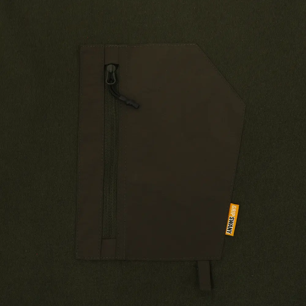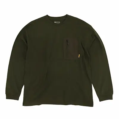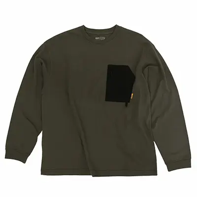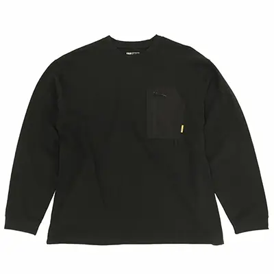 無骨な度詰コットン生地を採用した大型ナイロンポケット付きロンT
