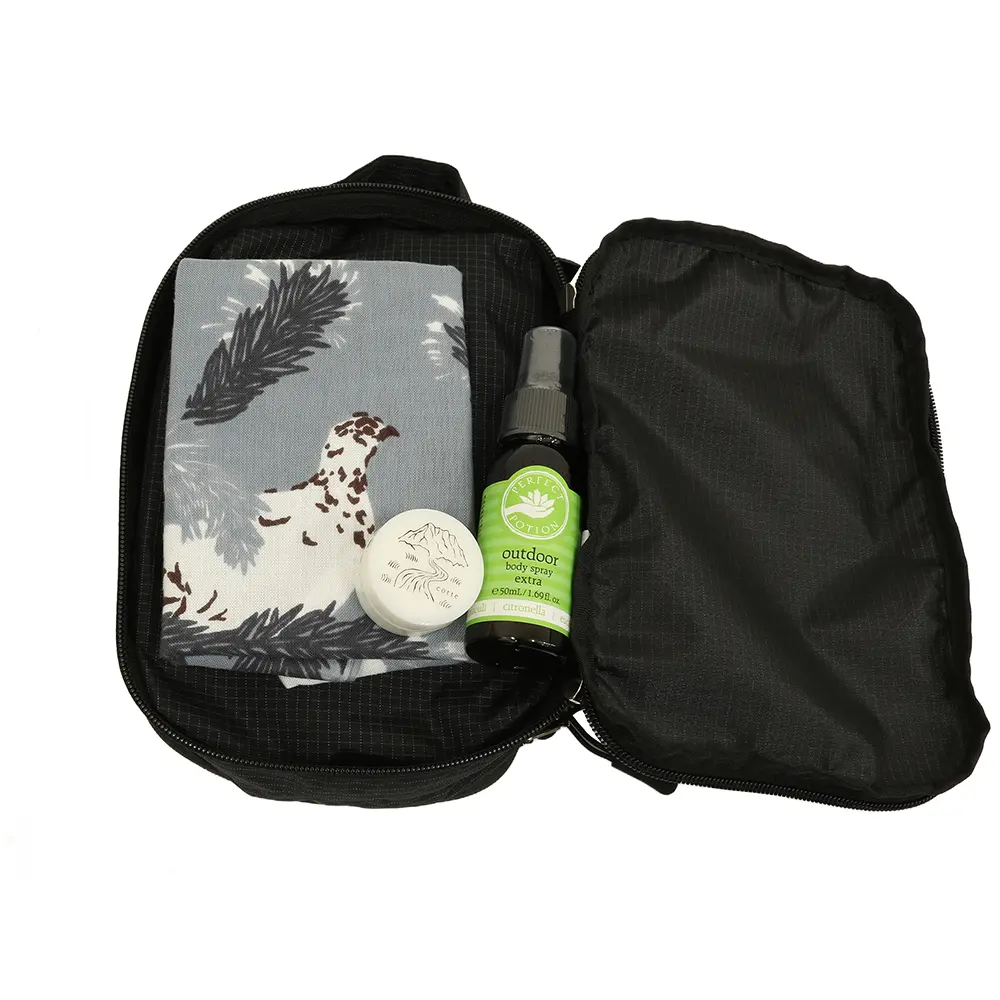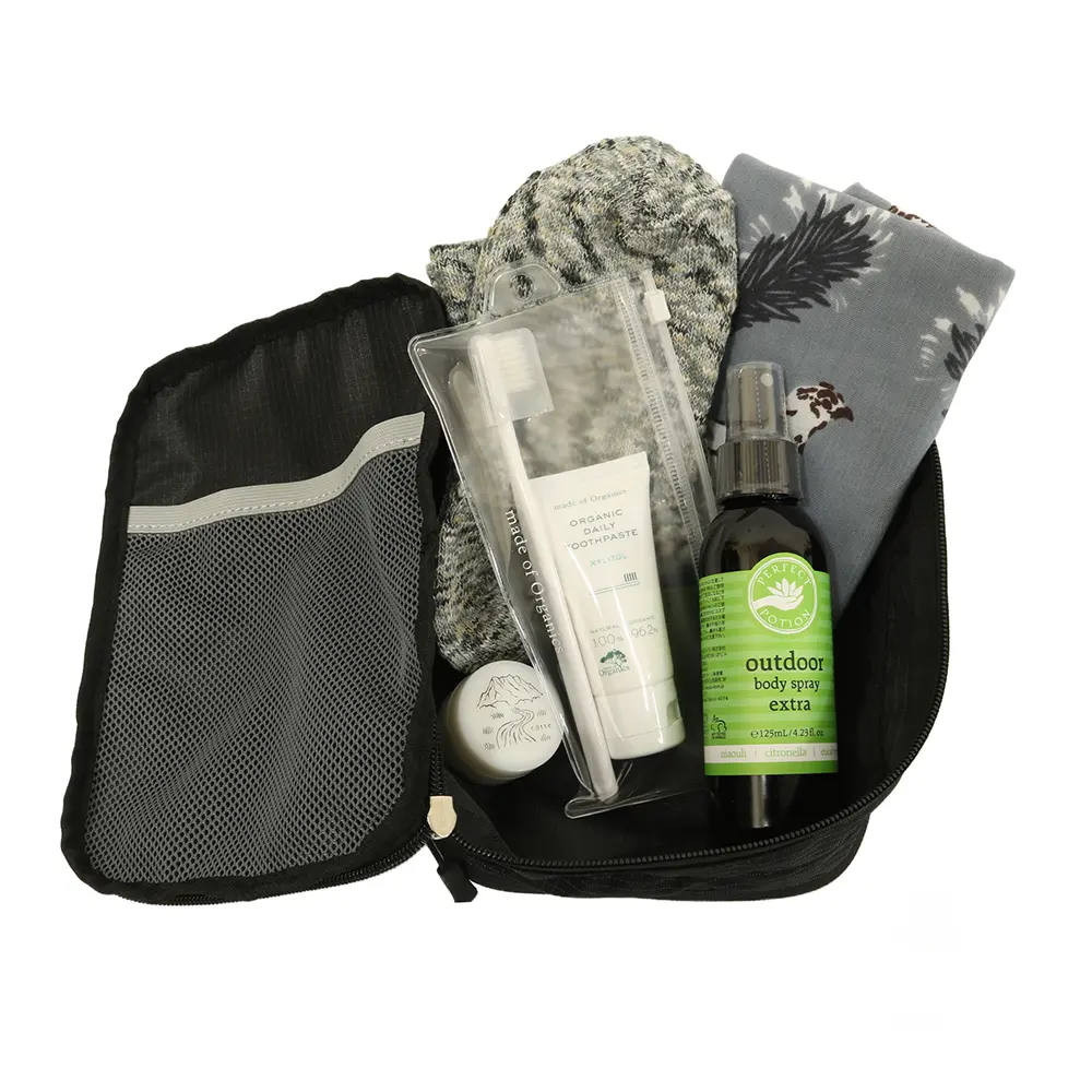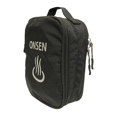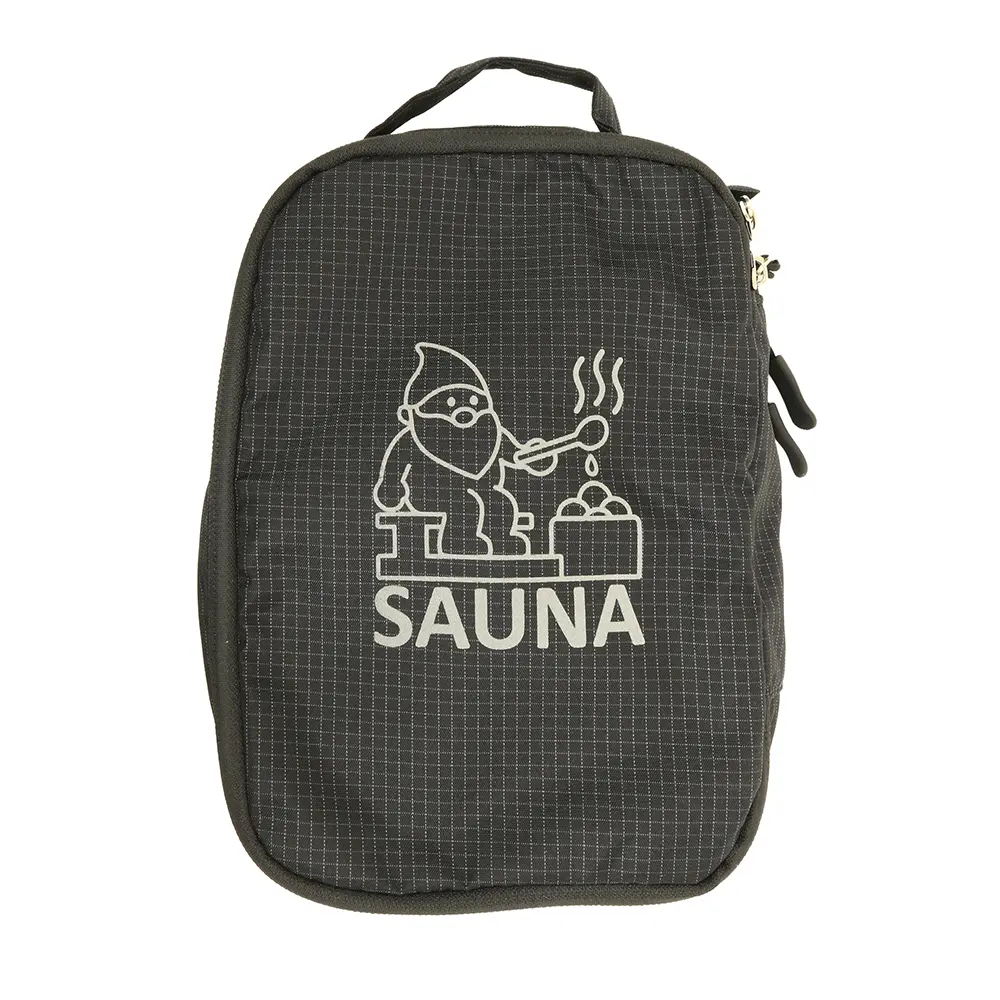 サウナハットやマット、スキンケアをひとまとめにできる余裕のサイズ感のポーチ