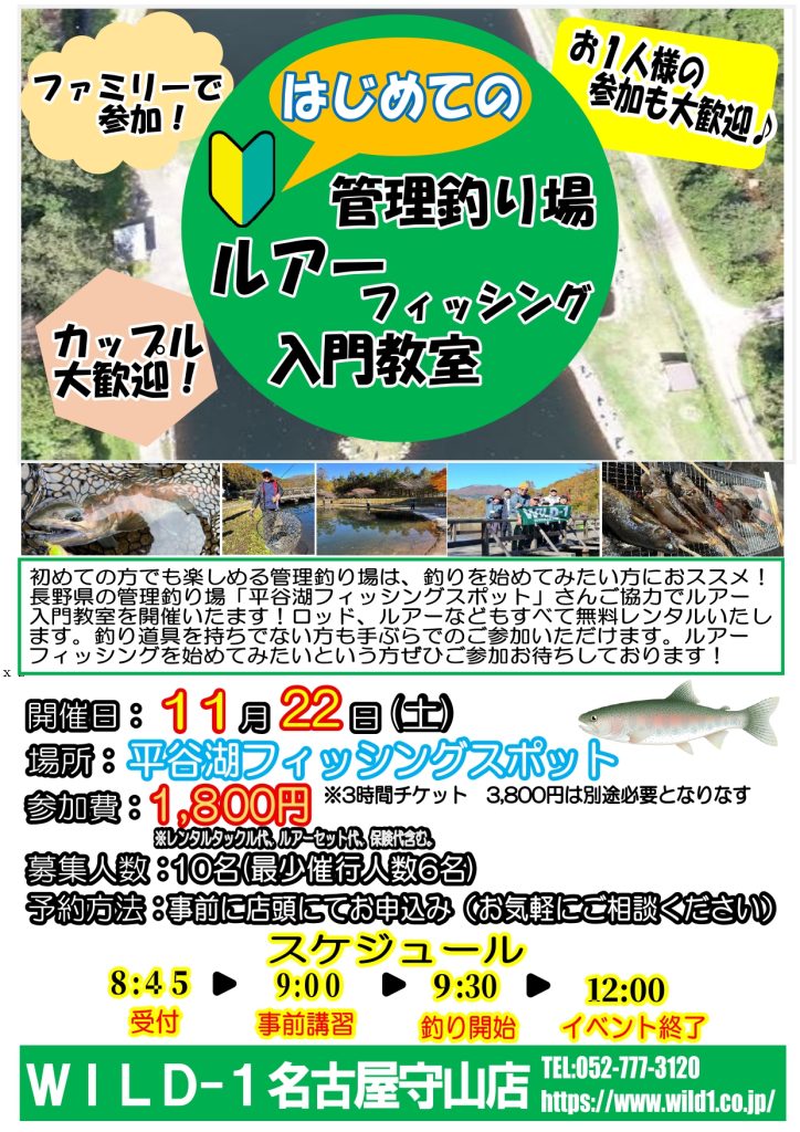 当店では「はじめての管理釣り場ルアーフィッシング入門教室」