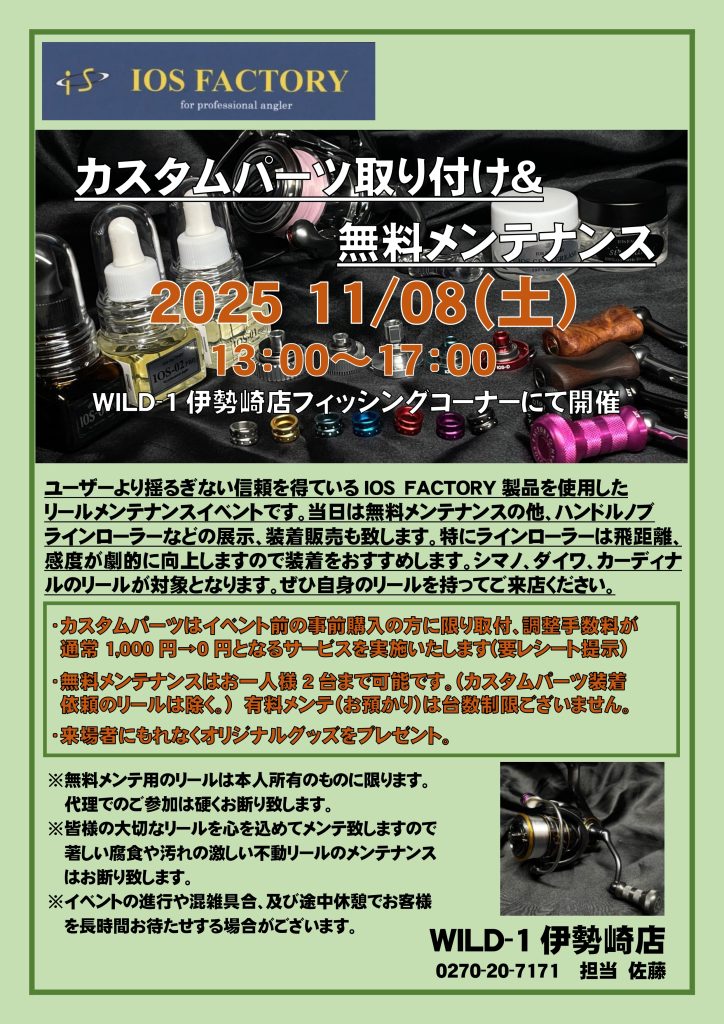 11月8日には「IOSカスタムパーツ取り付け&無料メンテナンス」