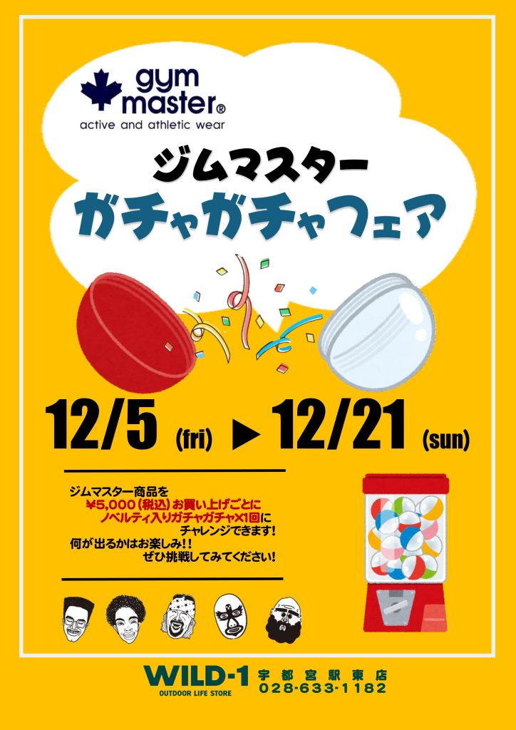 期間中ジムマスター商品をご購入の方限定!ノベルティ入りガチャガチャフェアを開催いたします。