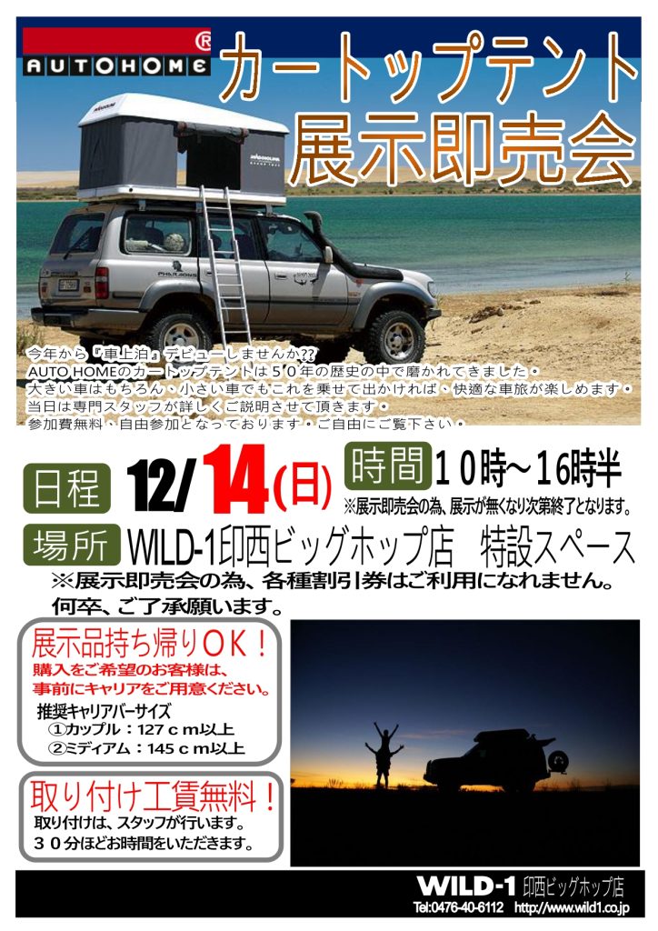 【ジファー カートップテント展示即売会 開催致します!】
