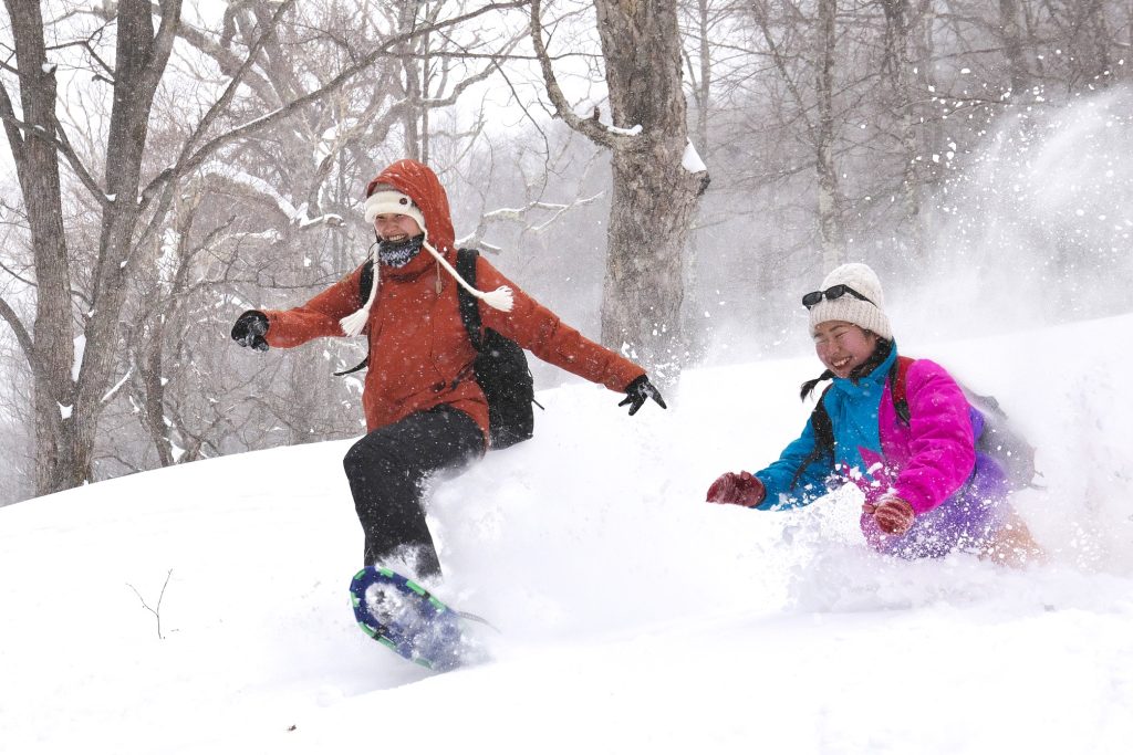 そんなところでも埋まらずに動き回れるのがスノーシュー!スキーやスノーボードのように特別な練習はいらないため初心者の方やご家族連れの方も大歓迎です。