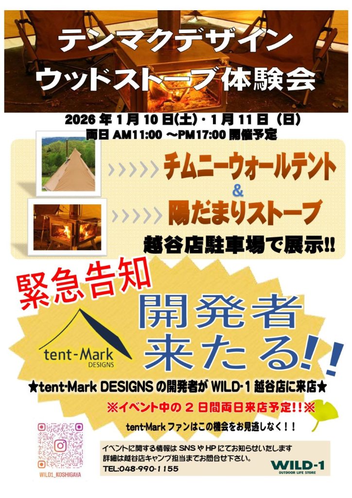 寒くなってきたこの時期に大活躍間違いなしの薪ストーブをテントの中にインストールして暖かさを実際に体感いただけます。