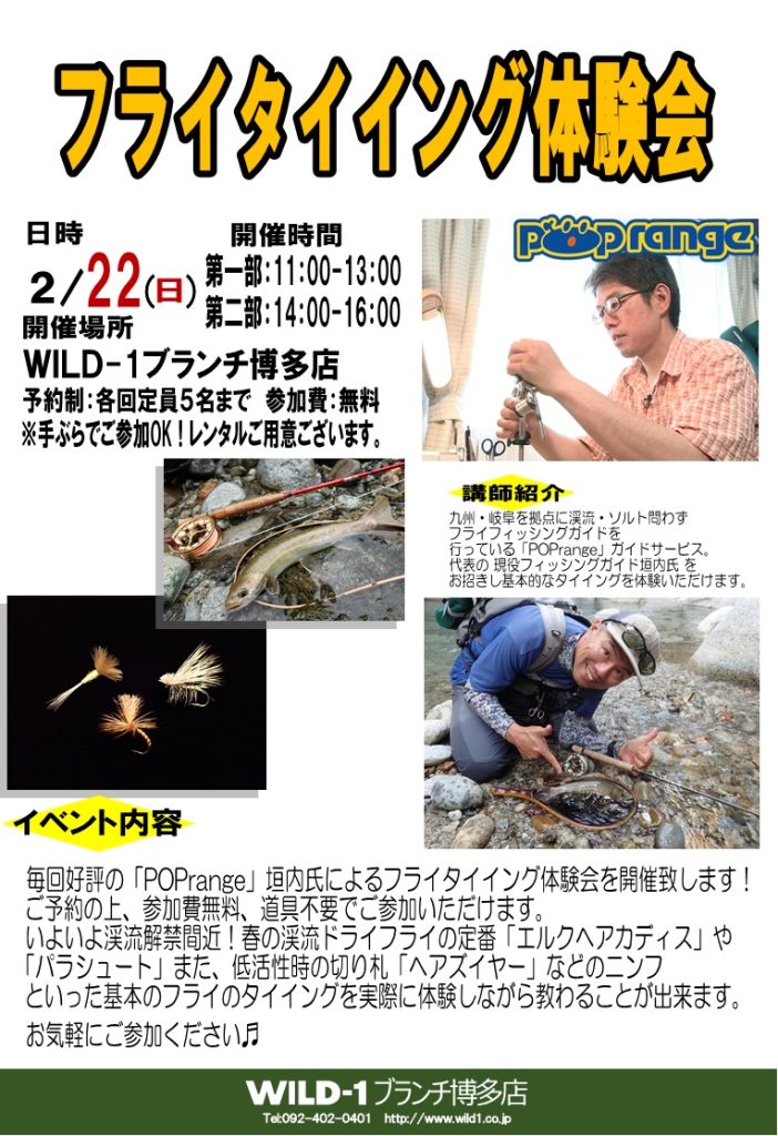 ポップレンジガイドサービス代表の垣内氏を講師にお招きし、春の渓流にオススメのドライフライとニンフについてタイイングを体験いただけます。
