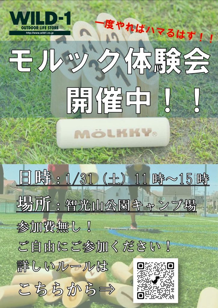 1/31(土)11:00より、智光山公園キャンプ場にて「薪割り&火起こし体験会」「モルック体験会」を開催いたします。