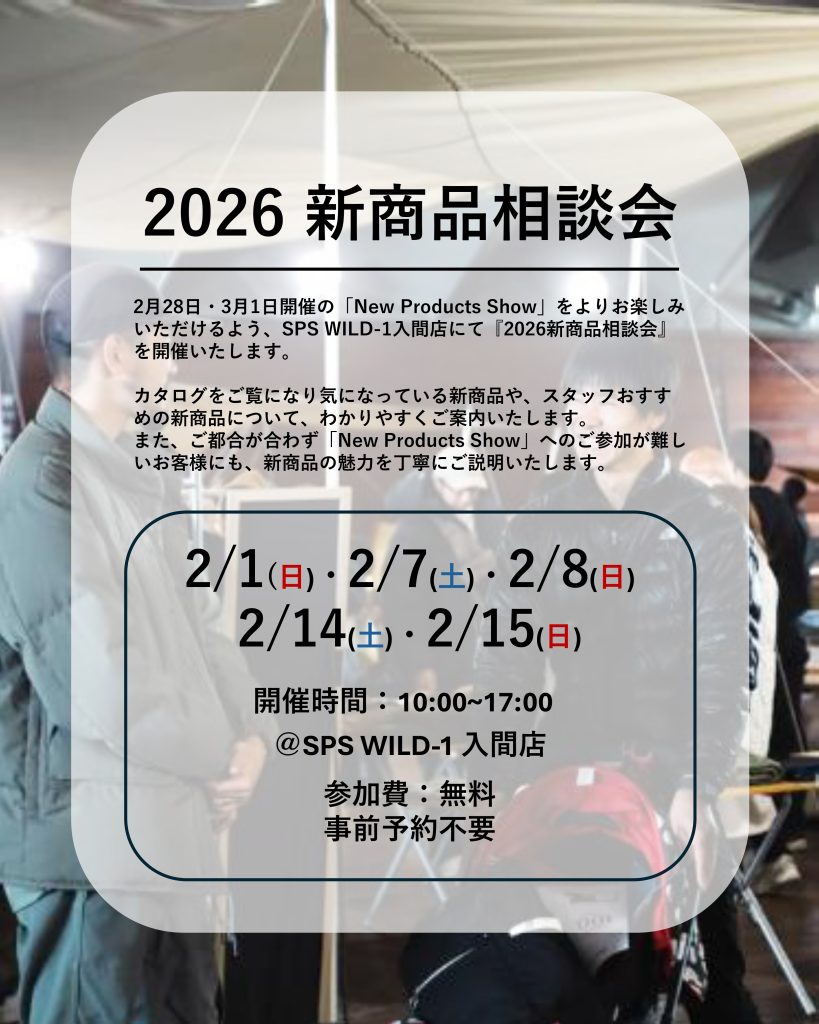 2月28日(土)・3月1日(日)に横浜で開催される 「New Products Show」をよりお楽しみいただけるよう、SPS WILD-1入間店にて『2026新商品相談会』を開催いたします。