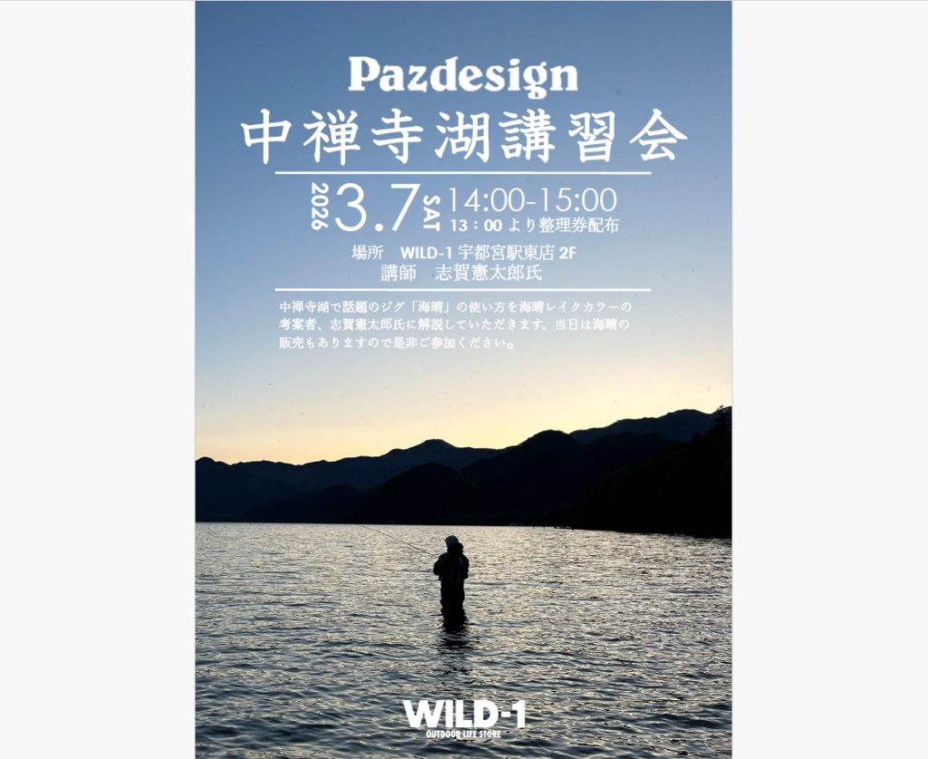 パズデザイン海晴 中禅寺湖講習会 2026年03月07日(土) 店頭催事・展示会 宇都宮駅東店 イベント一覧 パズデザイン海晴 中禅寺湖講習会を2026/3/7にWILD-1宇都宮駅東店 にて開催致します。 14:00から開始、参加整理券を13:00から配布致します。 中禅寺湖で話題のジグ「海晴」の使い方を海晴レイクカラーの考案者、 志賀憲太郎氏に解説していただきます。 当日は海晴の販売もありますので是非ご参加ください。 開催日 2026年03月07日(土) 募集店舗 宇都宮駅東店 この記事を投稿した店舗WILD-1 宇都宮駅東店 近くのWILD-1店舗を探すWILD-1公式オンラインストア Tweet