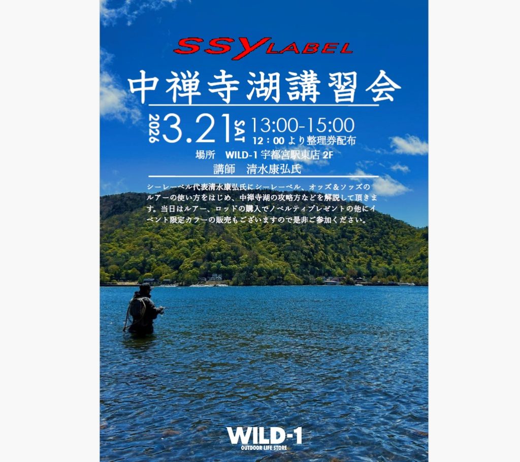 シーレーベル中禅寺湖講習会 2026年03月21日(土) 店頭催事・展示会 宇都宮駅東店 イベント一覧 2026/3/21にWILD-1宇都宮駅東店にてシーレーベル中禅寺湖講習会 を開催いたします。 開催時間 13:00~15:00 講習会整理券は12:00より配布致します。 シーレーベル代表清水康弘氏にシーレーベル、オッズ&ソッズの ルアーの使い方をはじめ、中禅寺湖の攻略方などを解説して頂きます。 当日はルアー、ロッドの購入でノベルティプレゼントの他にイベント 限定カラーの販売もございますので是非ご参加ください。 開催日 2026年03月21日(土) 募集店舗 宇都宮駅東店 この記事を投稿した店舗WILD-1 宇都宮駅東店 近くのWILD-1店舗を探すWILD-1公式オンラインストア Tweet