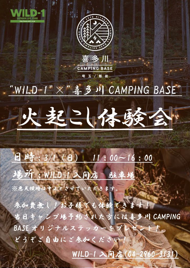 WILD-1入間店にて「喜多川キャンピングベース 火起こし体験会」を開催!!