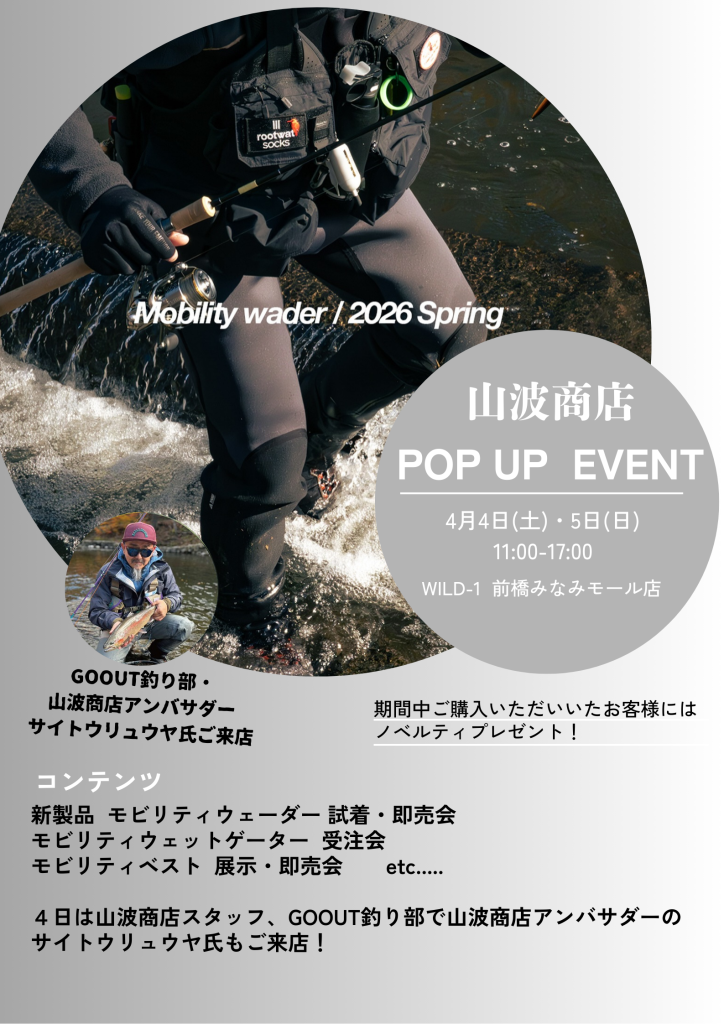 4/4(土)は山波商店スタッフに加え、GOUT釣り部で山波商店アンバサダーのサイトウリュウヤ氏もご来店!