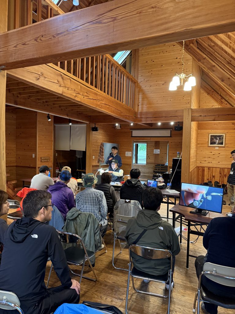 キャンプ場内にある“おじかセミナーハウス”では有名プロによるフライタイイングデモンストレーションを開催。