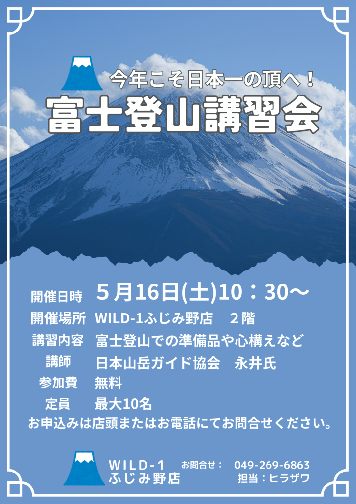 講習会では富士登山の際の服装やレイヤリング方法、登山靴の正しい選び方、必要な持ち物などをご説明させていただきます!
