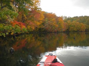 浅くて小さめの湖は、SUP初心者の私にぴったり。