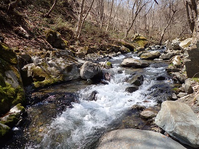 晴天の下、気温は季節外れに上がっているようだった。渓伝いの林道を歩いていると、ジワリと汗ばむくらいの暖かさだった。岸辺のあちらこちらに白い花が咲き乱れているのが見えた。吹き荒れる春風にあおられ花々が揺れると、何やら春の賑わいが増してくる感じで、自然に嬉しさがこみ上げてきた。ついこの前までは静かな雪景色だった渓も、いよいよ本格的な春を迎えたということである。