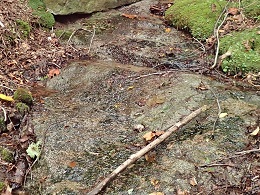 ニンフの棲み処。ダンとスピナーはその傍にいる可能性が高い、と考えているのだが、しかしながらその姿を見つけることができない。棲み処には程好い水量で清水が湧き流れている。ニンフの探索を開始すると、新鮮な清水が岩肌を濡らしているところで、オビカゲロウのニンフを見つけることができた。体長6mmと7mmの個体。