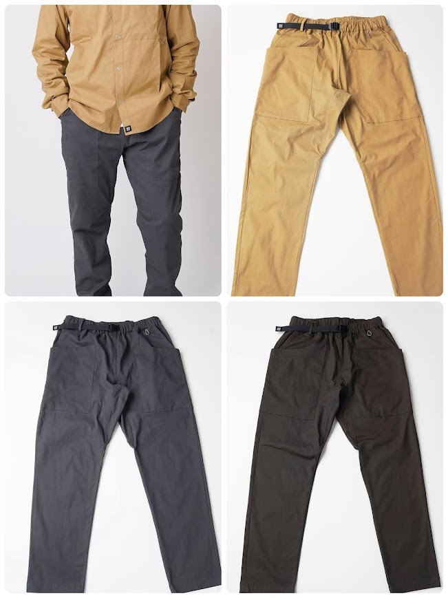 STRETCH CHINOは綿とポリウレタンの混紡素材なので、コットン100%よりストレッチがあり、、タウンユースはもちろんスローハイク・キャンプにも