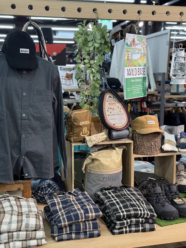 温泉シリーズを持ってWILD BASEのシューズとウェアで