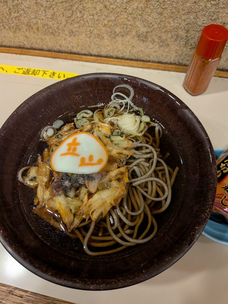 まずは室堂駅内の立山そばは、ホタルイカのかき揚げそば。