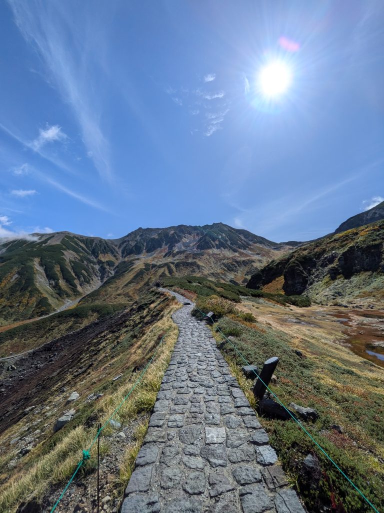 剣山荘に戻り、別山乗越から雷鳥坂を下り、石畳の階段を無心で登り室堂へ。