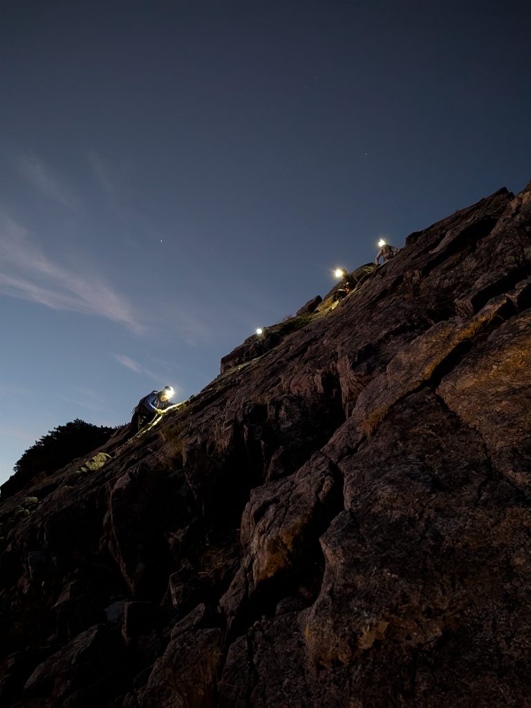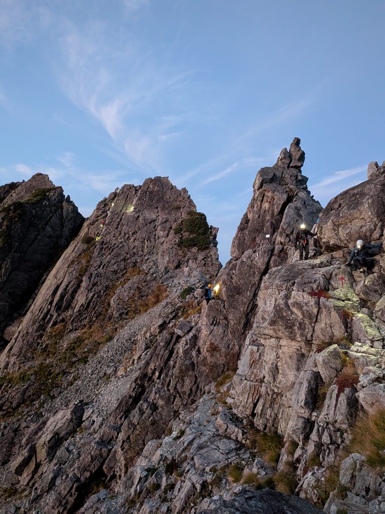 山頂アタック時はヘルメットを着用し、安全対策を行ってください。