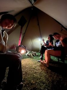 大人の時間突入です。焚火の前でお酒を飲みながら語り合う