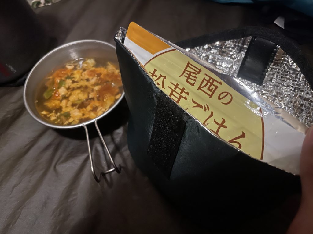 今回のテント泊で大活躍してくれたグッズは「フードコージー」。