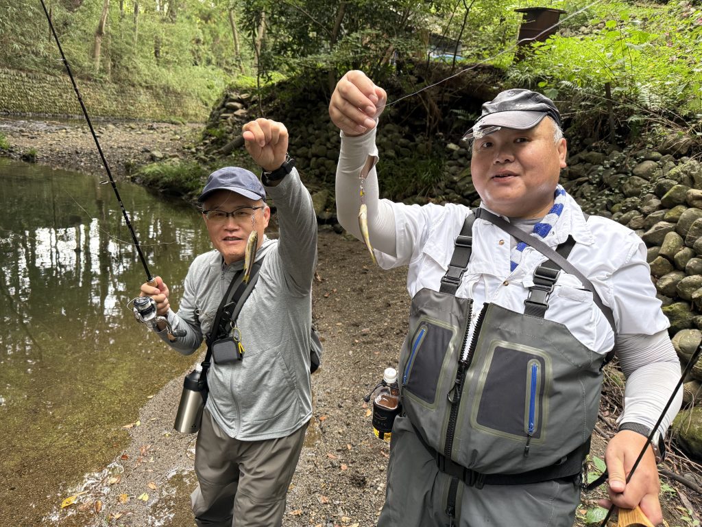 実際のフィールドでポイントの選定やルアーの流し方などご案内いただき、みなさんナイスチャブをキャッチしていました。