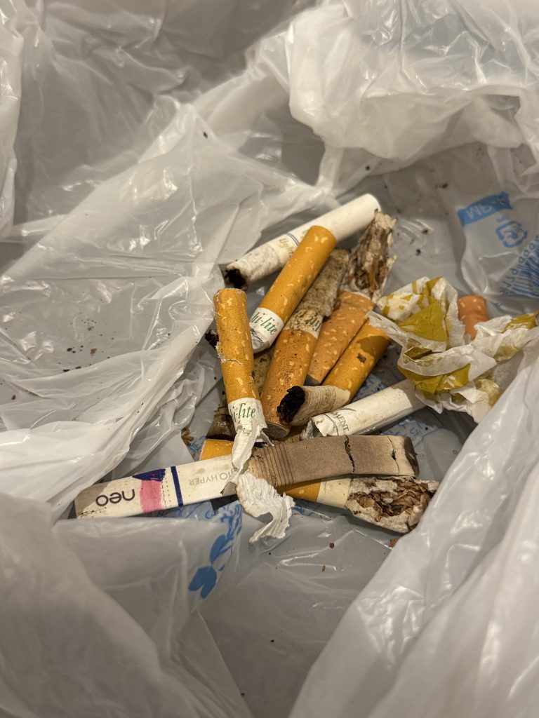 途中たばこの吸い殻があちこちに、、、乾燥するこの時期ポイ捨ては本当に危険です。