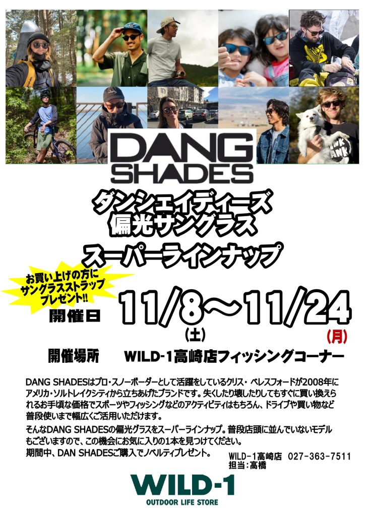 お手頃価格で人気のDANG SHADESの偏光サングラスを期間限定で数多く取り揃え!ノベルティープレゼント!
