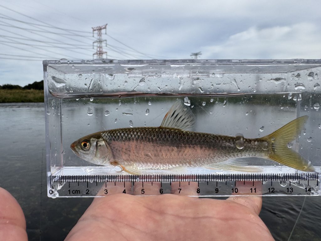 初めて生で見るオイカワは時期的に婚姻色のような派手さこそ無いものの、銀ピカの体色に薄っすらと空色、