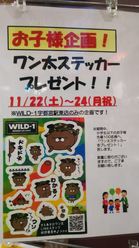 今回は、小学生以下のお子様へ「ワイルドワン太のステッカー」をプレゼント致します。
