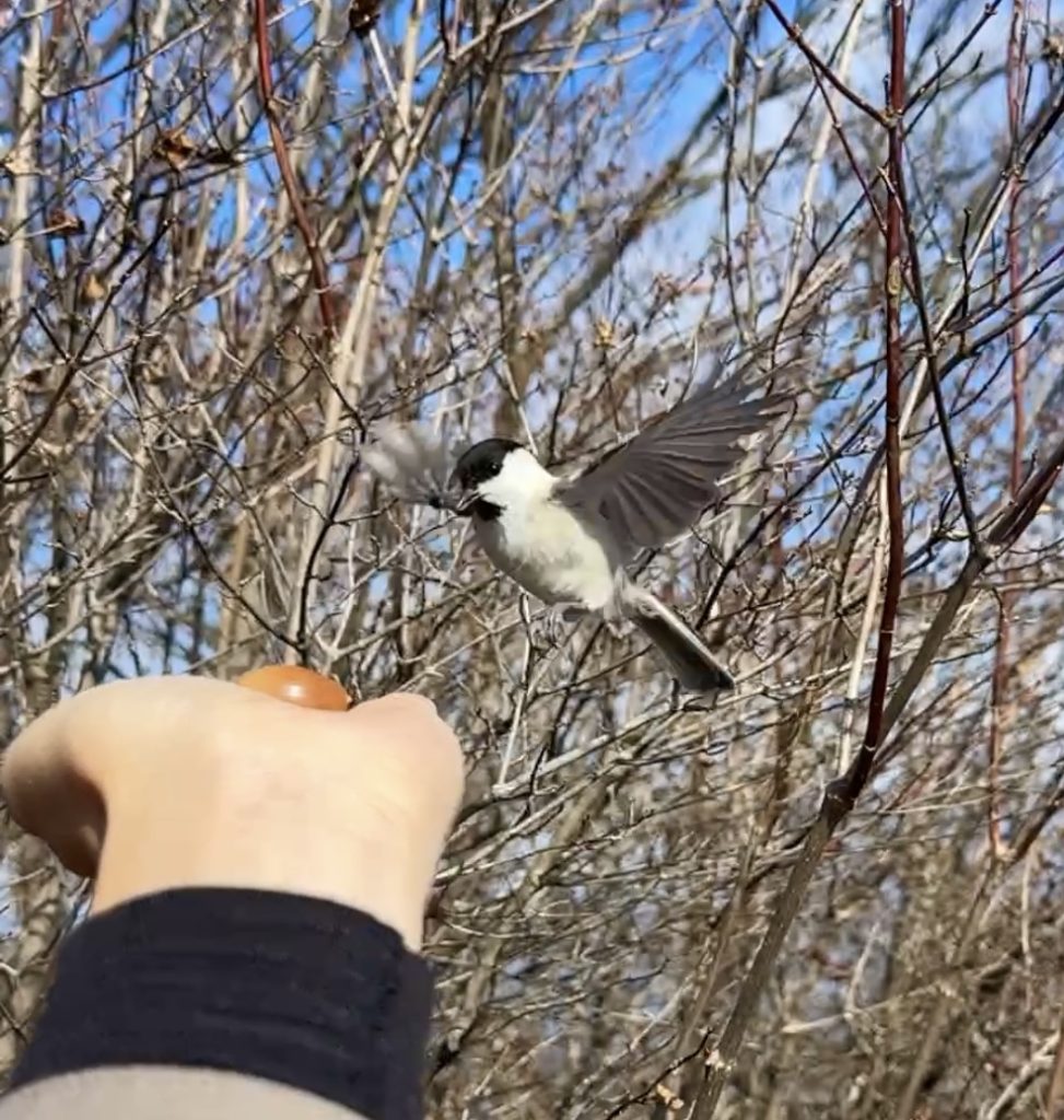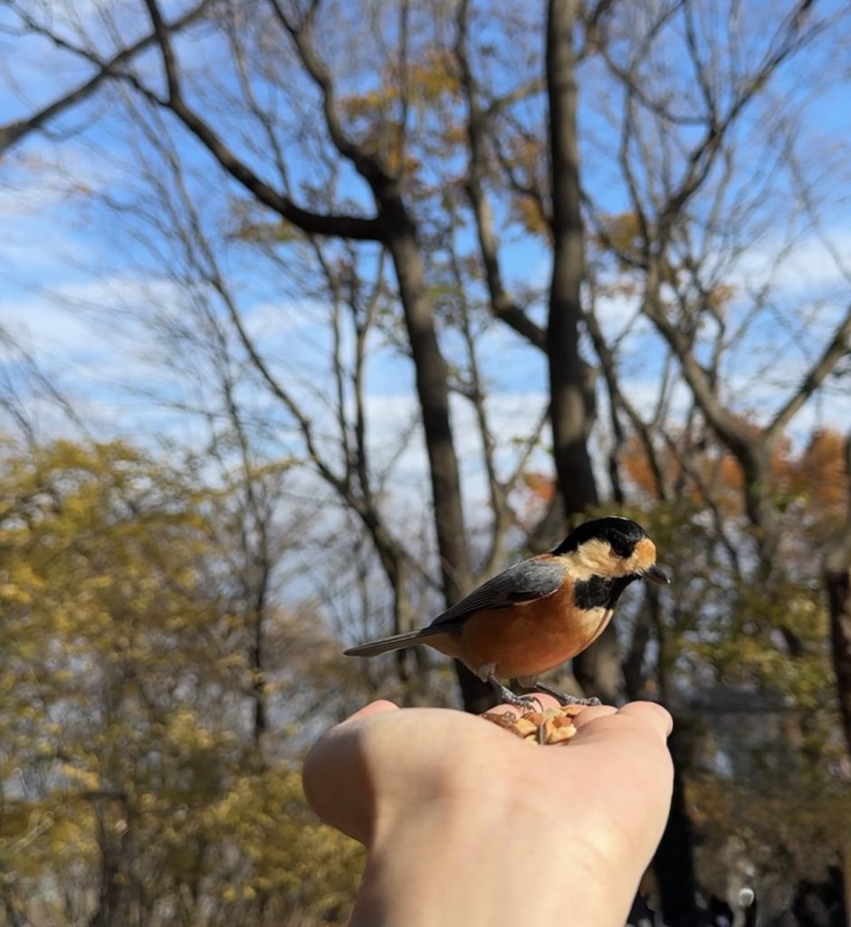 ヤマガラやコガラ、ゴジュウカラなど、様々な野鳥が手に乗ってくれたり、近くに止まってきてくれるので鳥好きにはたまらない時間となりました!(インコ4羽飼ってます)