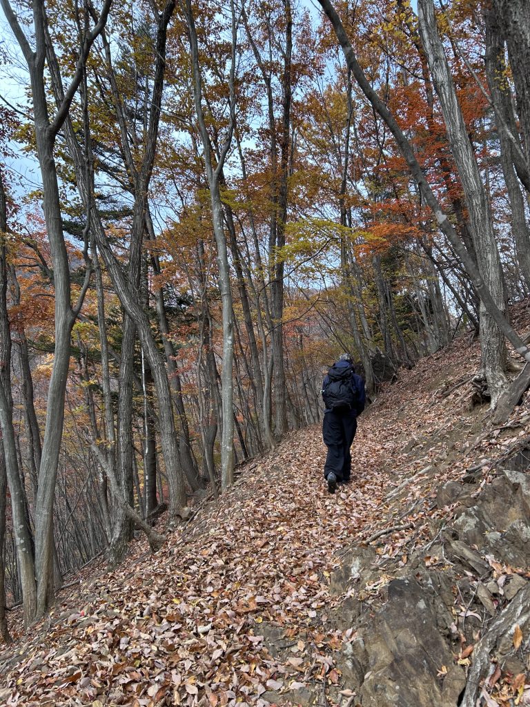 登山道は落ち葉がかなり溜まっていてわかりずらくなってます。