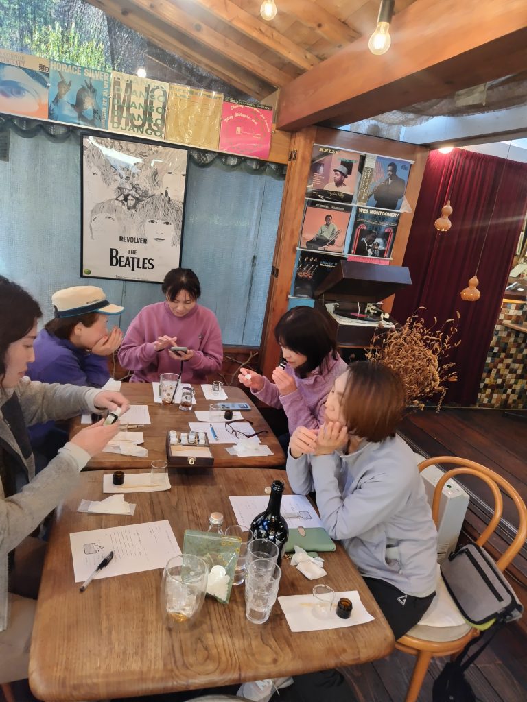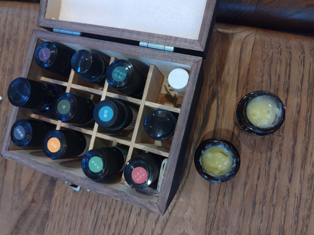 好きなアロマオイルでオリジナルのアロマクリーム作りを真剣に取り組んでいました。。