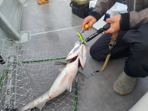 その後すぐにまた違う方にヒット!こちらもなかなかのサイズ!何度か走られながらも無事に1匹めをキャッチ!
